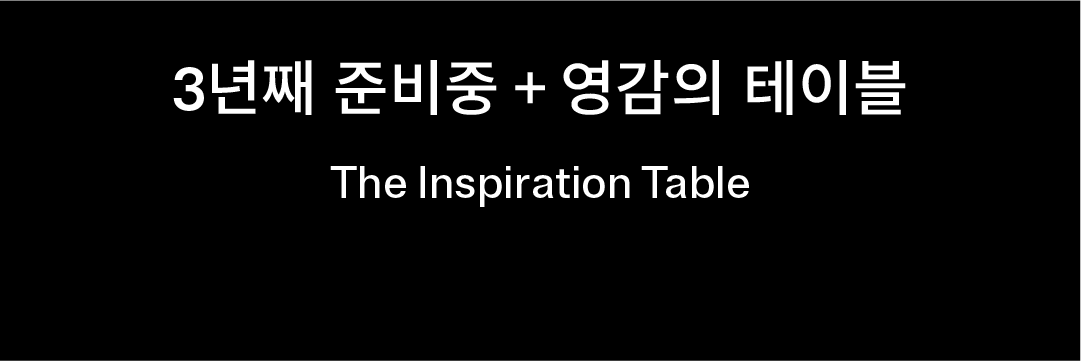 현장에서 특히 많은 분들께 사랑 받았던 영감의 테이블은, 조스라운지가 (머리 속에서) 일하는 과정을 보다 깊게 보여드리고 싶은 마음에 나오게 되었는데, 너무 개인적이지 않을까(투머치가 아닐까) 하는 고민으로, 오히려 준비한 것에서 많이 덜어냈던 기억입니다. 재료를 보여주는 방식이나 구성에 대해선 올 여름 신세계 헤리티지에서 보았던 <여름이 깃든 자리> 전시가 큰 도움이 되었습니다.